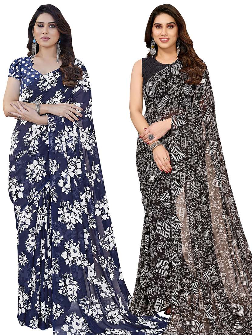 pack of 2 casual wear sarees with blouse - 21445445 - Very Small Image - 1