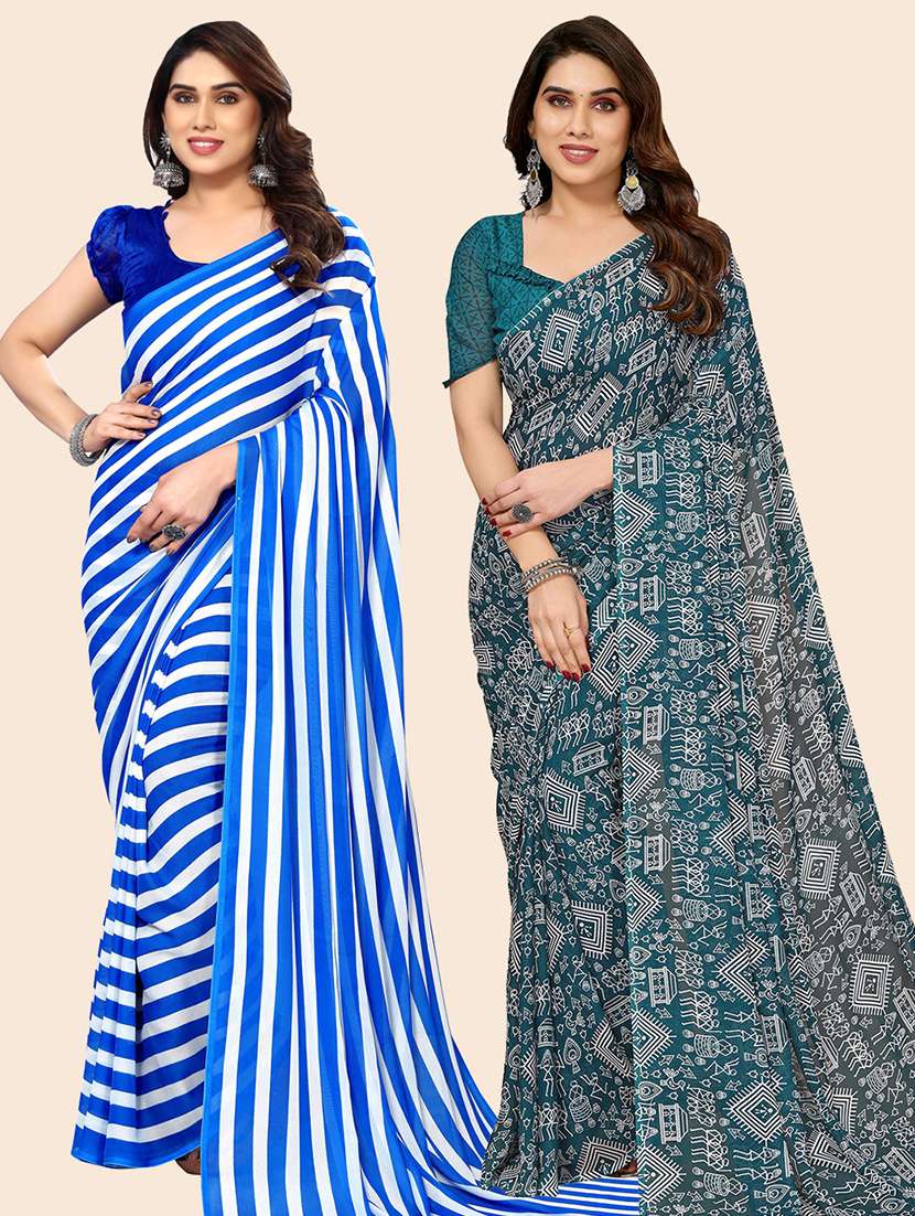 pack of 2 printed casual wear sarees with blouse