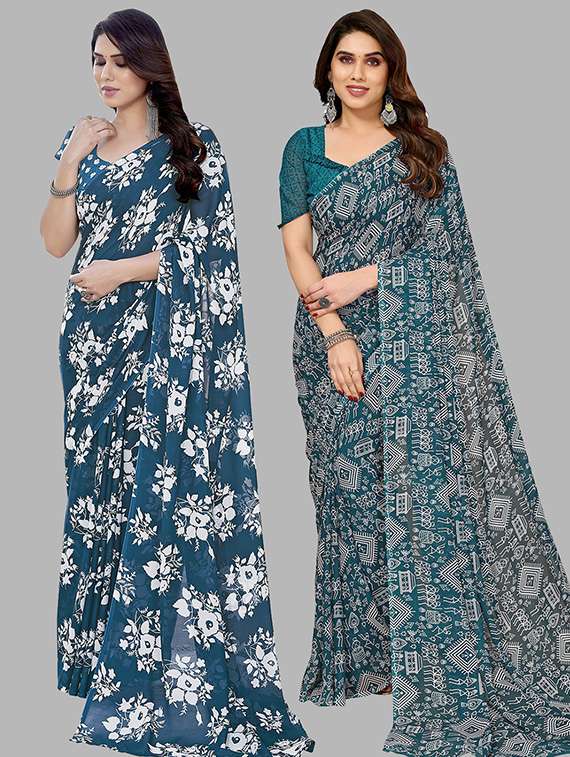 women pack of 2 casual wear combo saree with blouse
