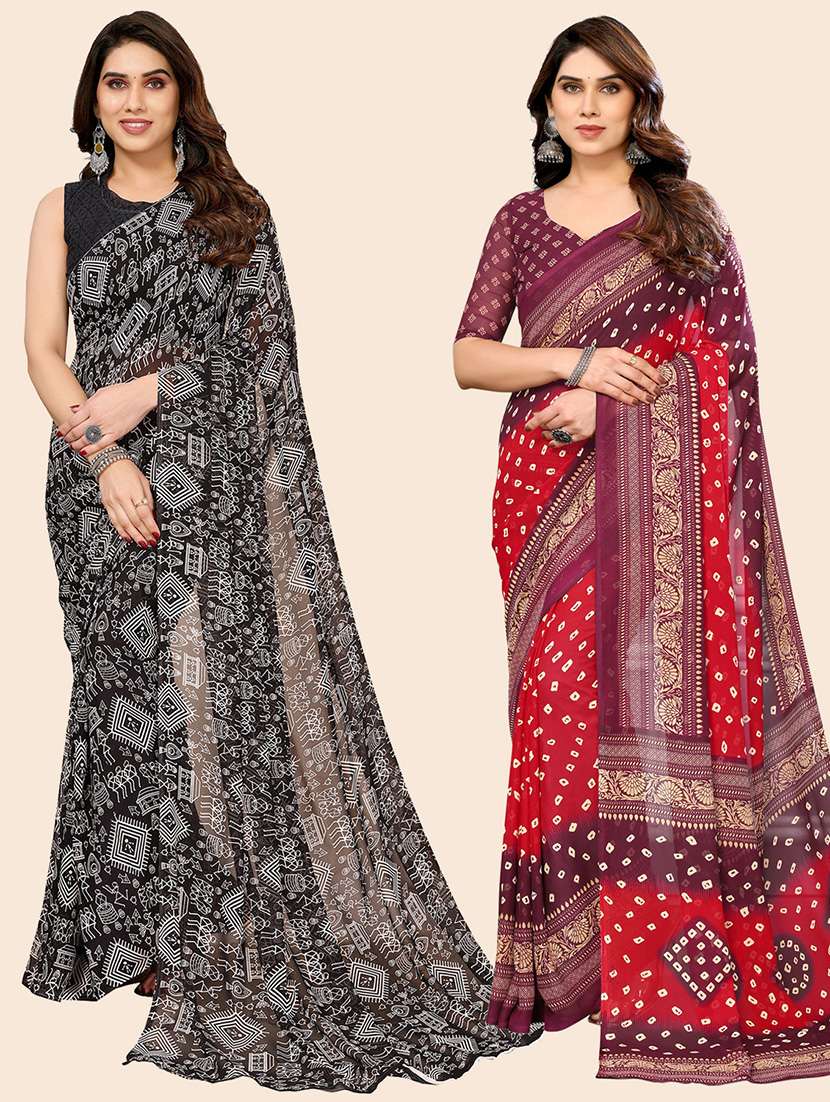 pack of 2 casual wear combo sarees with blouse
