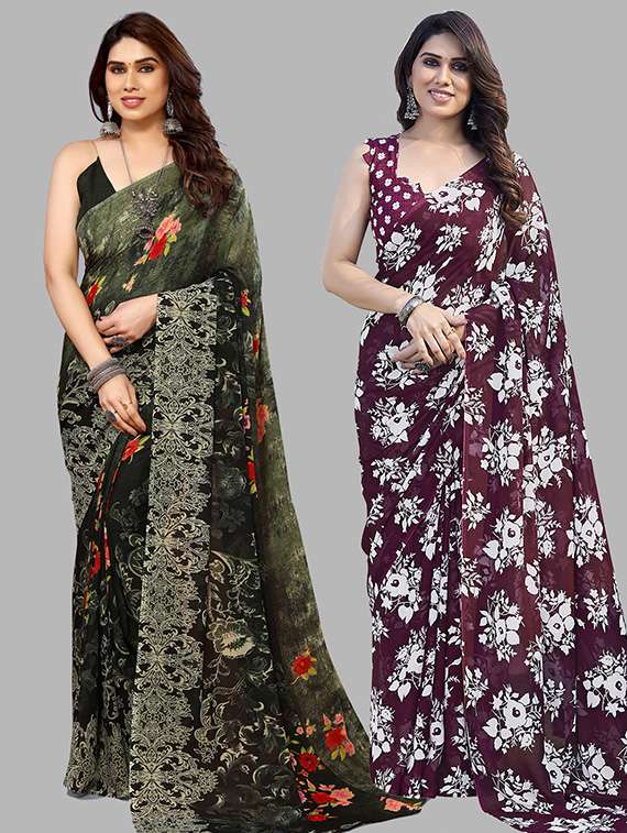 pack of 2 casual wear combo sarees with blouse - 21445499 - Very Small Image - 1