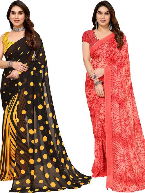 pack of 2 printed casual wear sarees with blouse - 21445513 - Very Small Image - 1