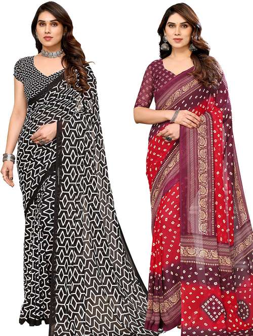 pack of 2 casual wear sarees with blouse - 21445557 - Very Small Image - 1