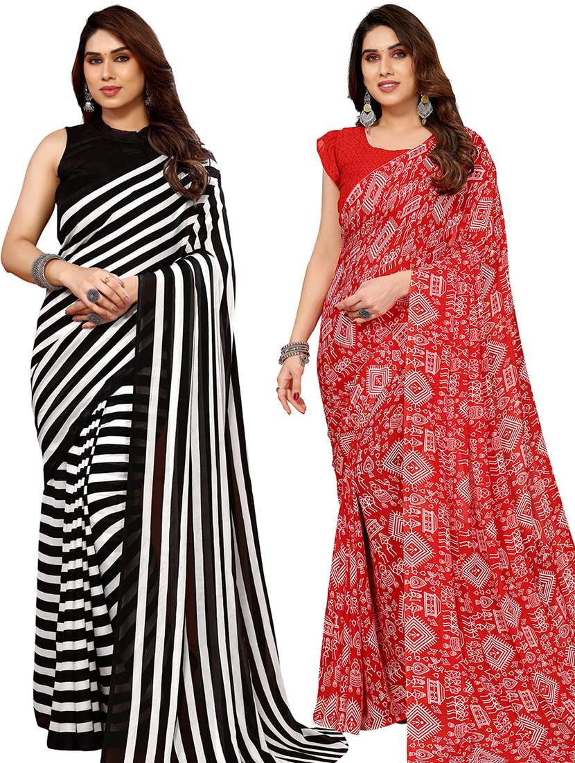 women pack of 2 casual wear combo saree with blouse