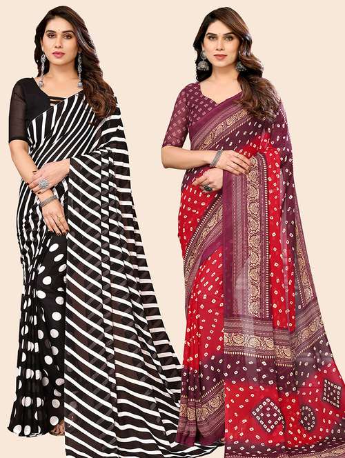 pack of 2 printed casual wear sarees with blouse - 21445587 - Very Small Image - 1