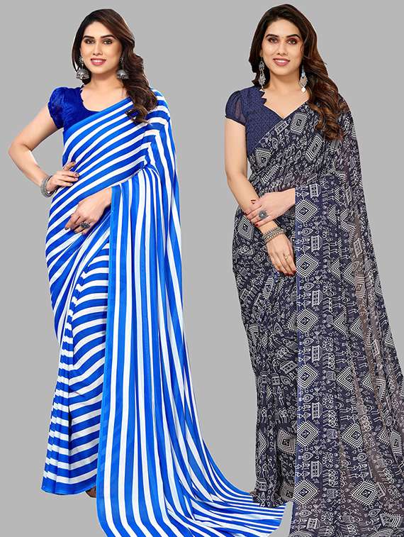 pack of 2 printed casual wear sarees with blouse - 21445599 - Very Small Image - 1