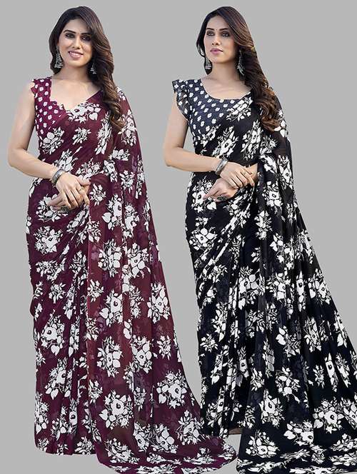 pack of 2 casual wear sarees with blouse - 21445602 - Very Small Image - 1