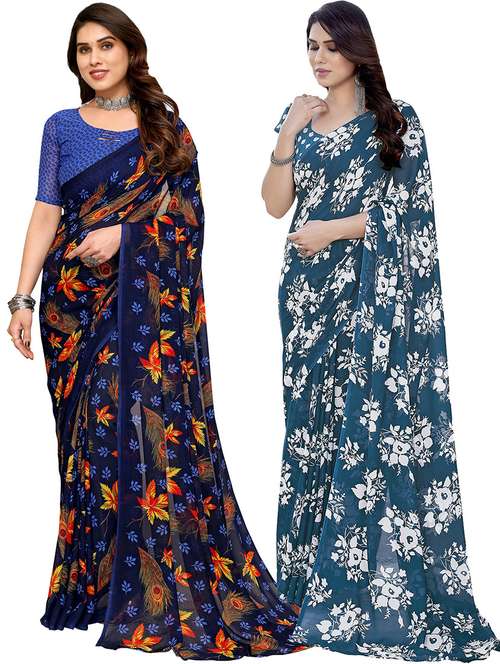 pack of 2 casual wear sarees with blouse - 21445633 - Very Small Image - 1