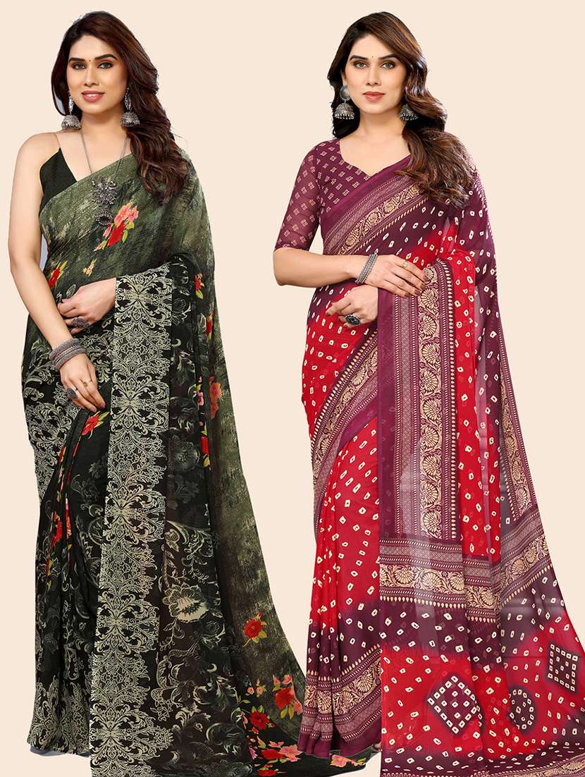 women pack of 2 casual wear combo saree with blouse