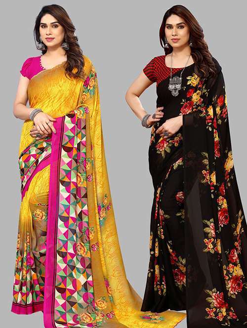 women pack of 2 casual wear combo sarees with blouse - 21445694 - Very Small Image - 1