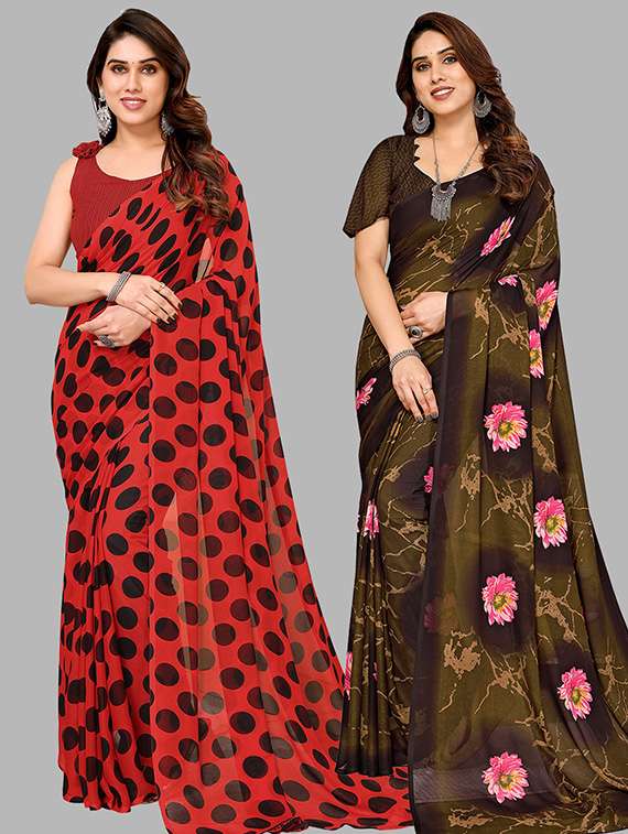 pack of 2 printed casual wear sarees with blouse