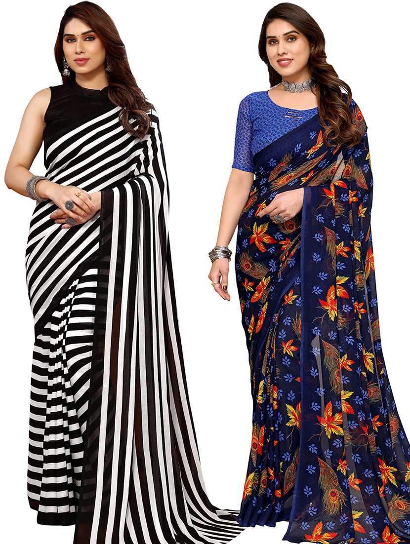 pack of 2 printed casual wear sarees with blouse