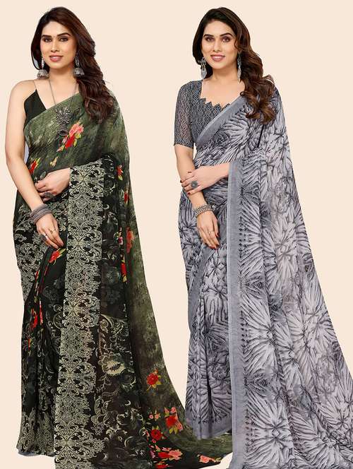 pack of 2 casual wear sarees with blouse
