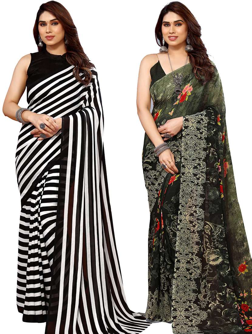 pack of 2 printed casual wear sarees with blouse - 21445811 - Very Small Image - 1