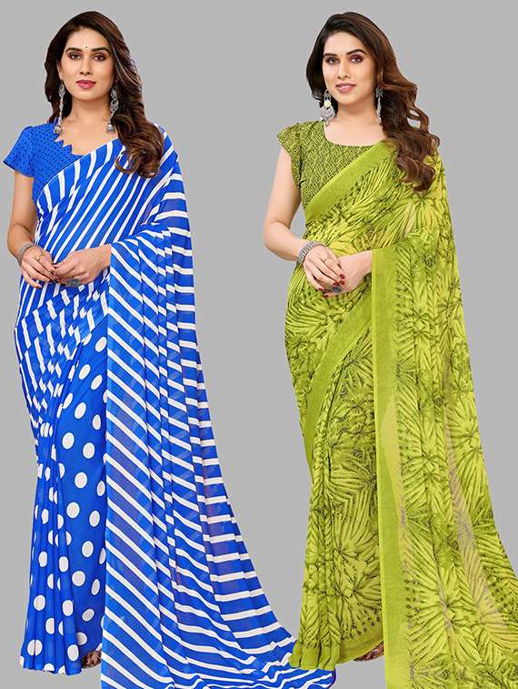 pack of 2 printed casual wear sarees with blouse - 21445844 - Very Small Image - 1