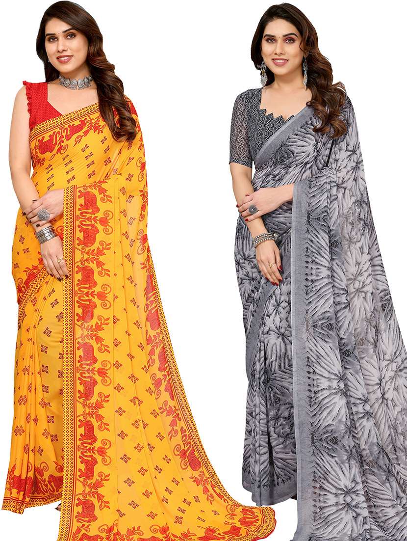 pack of 2 printed casual wear sarees with blouse - 21445868 - Very Small Image - 1