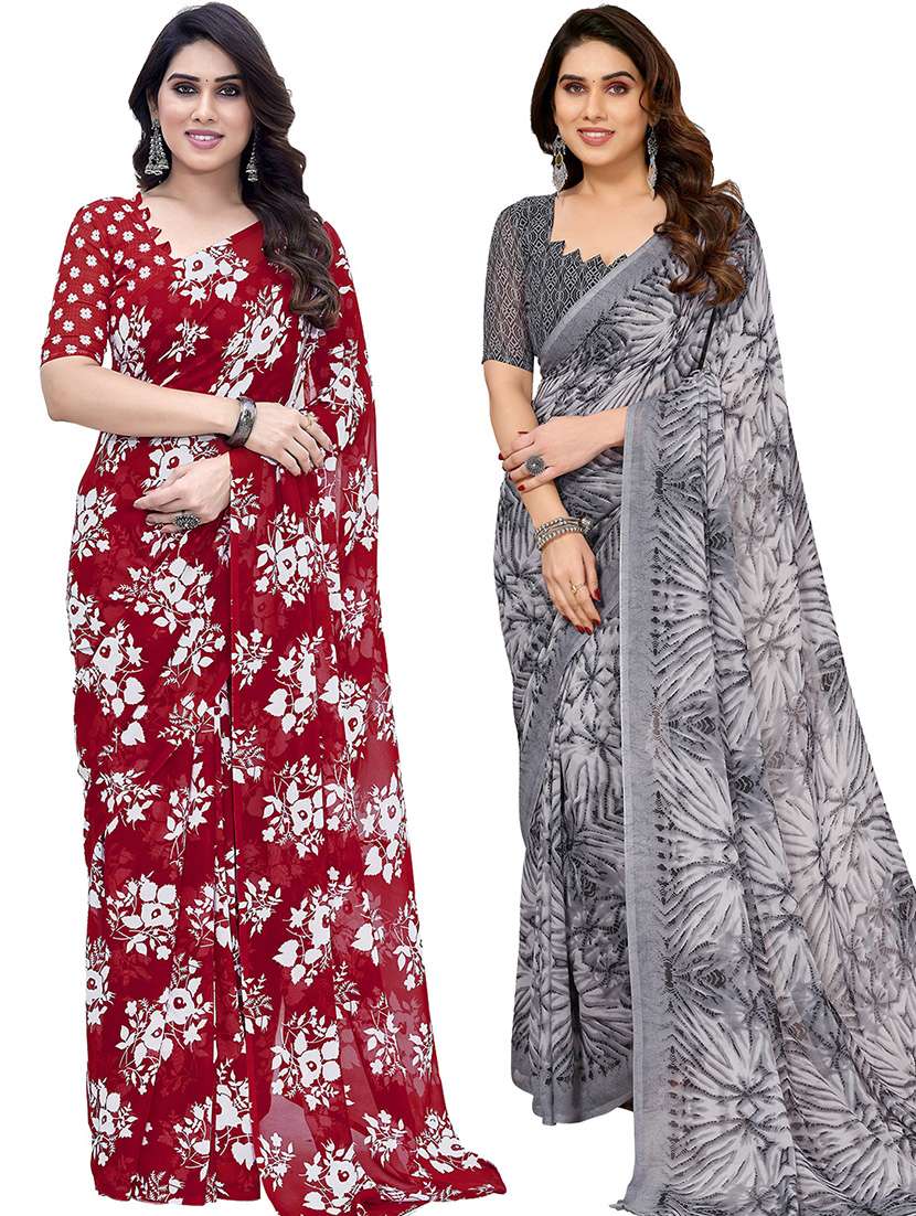pack of 2 casual wear combo sarees with blouse - 21445882 - Very Small Image - 1