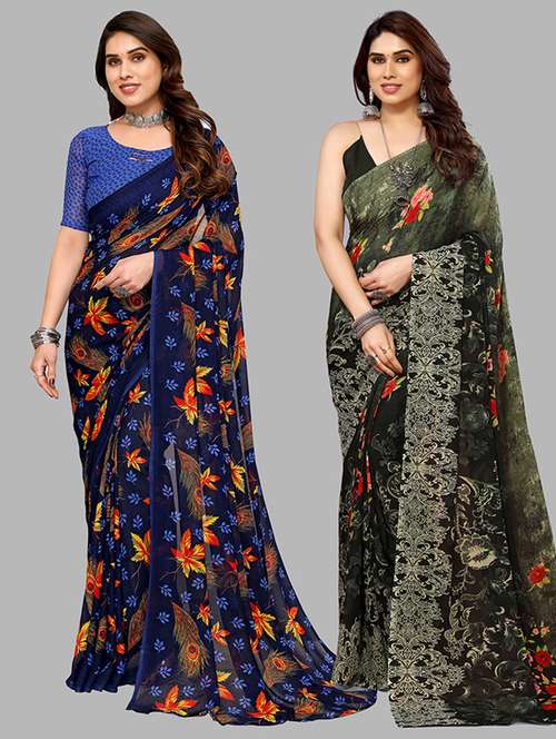women pack of 2 casual wear combo sarees with blouse - 21445895 - Very Small Image - 1
