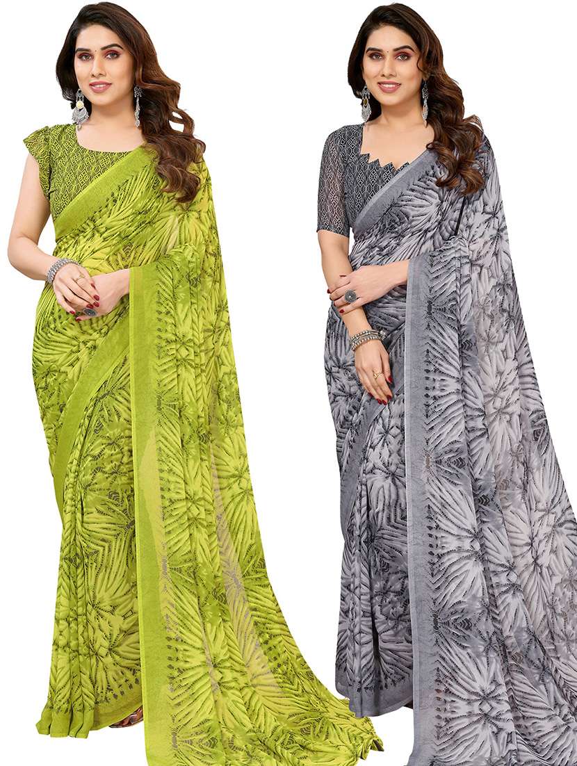 pack of 2 printed casual wear sarees with blouse