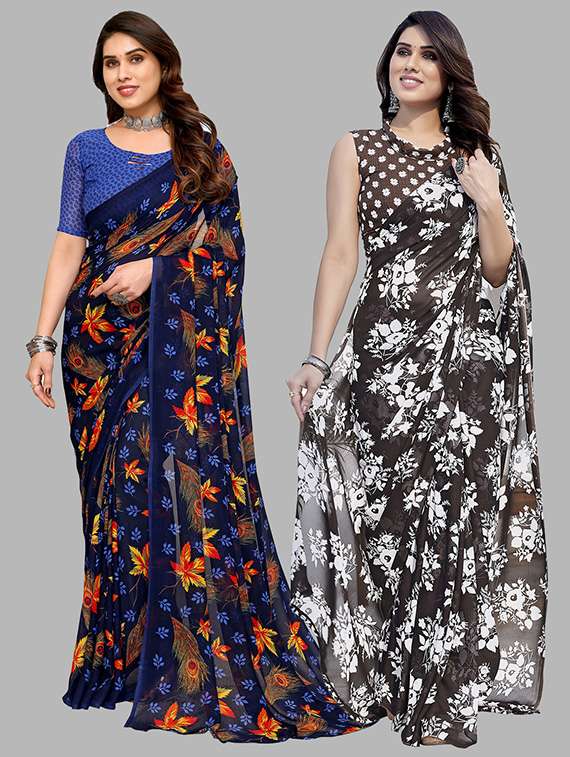 pack of 2 printed casual wear sarees with blouse - 21445897 - Very Small Image - 1