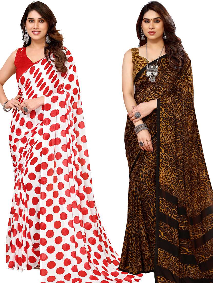 pack of 2 casual wear sarees with blouse - 21445914 - Very Small Image - 1