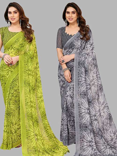 women pack of 2 casual wear combo saree with blouse