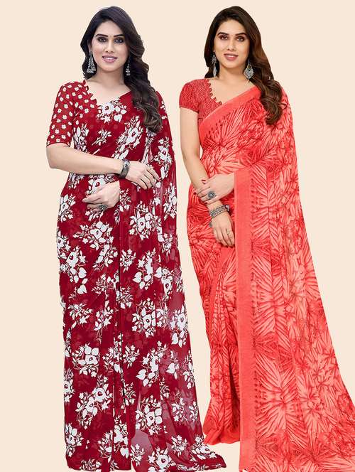 pack of 2 casual wear sarees with blouse - 21445989 - Very Small Image - 1