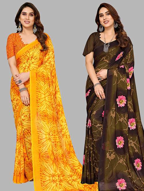 pack of 2 printed casual wear sarees with blouse