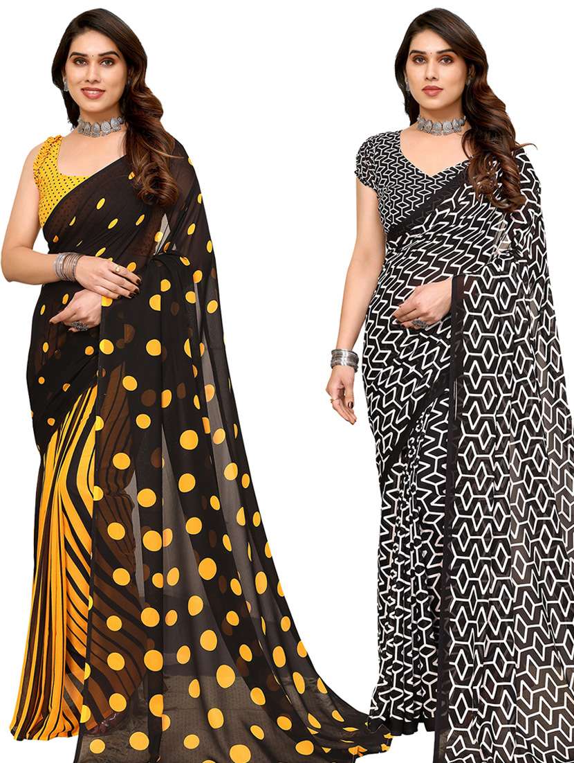 women pack of 2 casual wear combo sarees with blouse