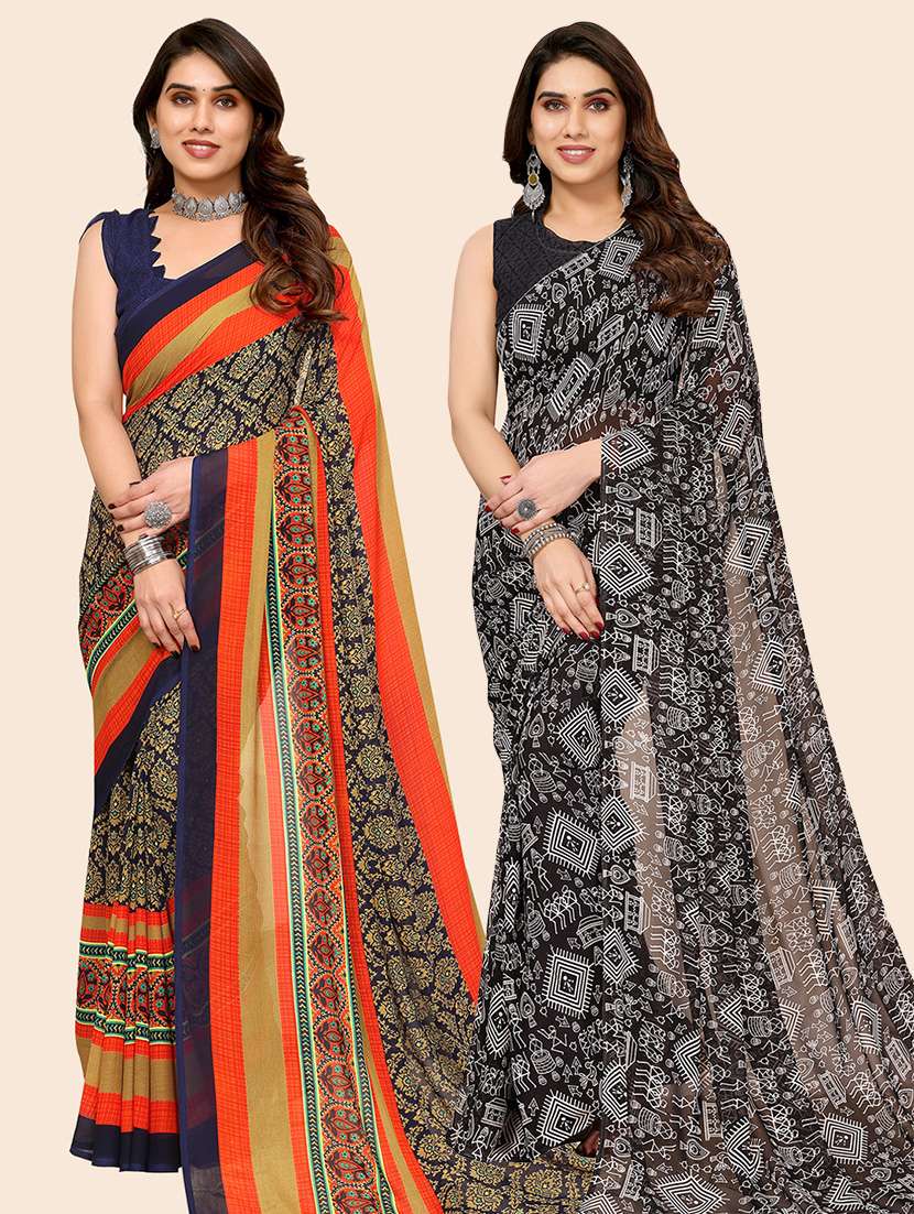 pack of 2 casual wear combo sarees with blouse - 21446026 -  Standard Image - 0 pack of 2 casual wear combo sarees with blouse - 21446026 -  Zoom Image - 0