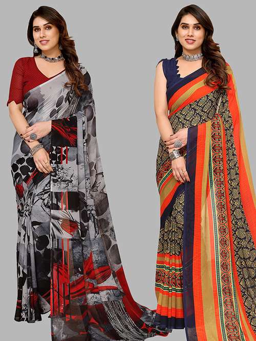 pack of 2 casual wear sarees with blouse