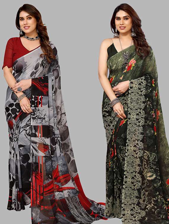 pack of 2 casual wear sarees with blouse - 21446061 - Very Small Image - 1