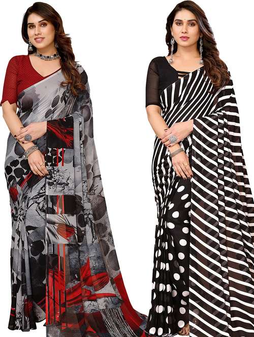 women pack of 2 casual wear combo sarees with blouse - 21446069 - Very Small Image - 1