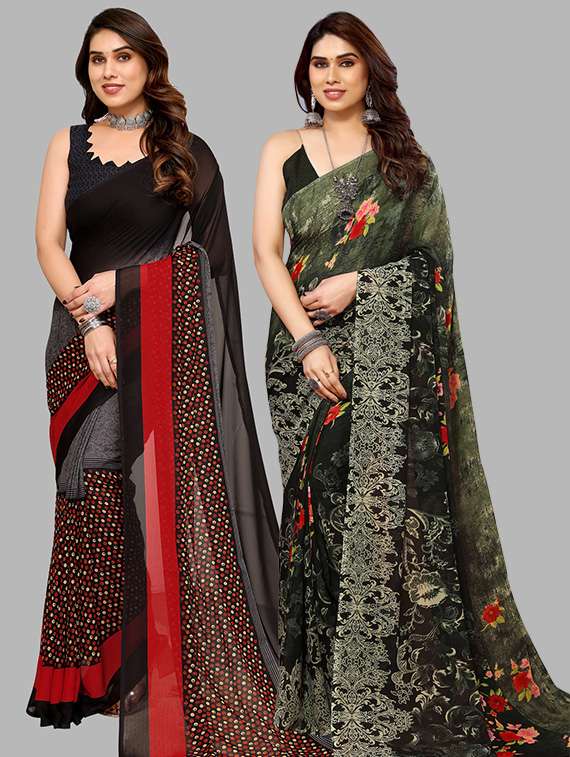 pack of 2 printed casual wear sarees with blouse - 21446140 - Very Small Image - 1