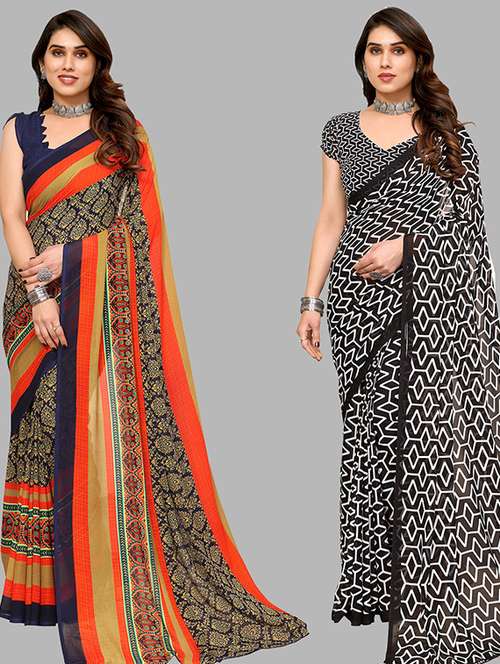 women pack of 2 casual wear combo saree with blouse - 21446157 - Very Small Image - 1