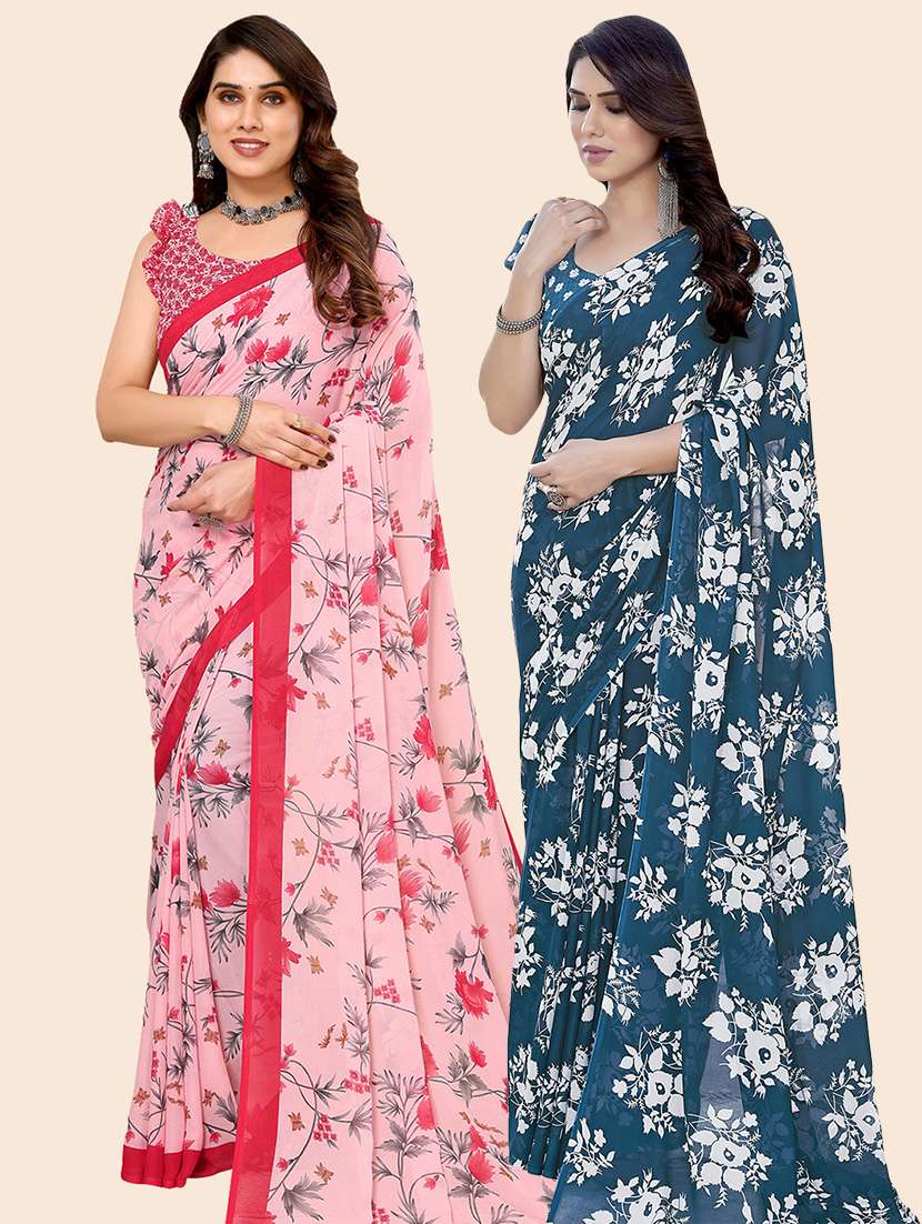 pack of 2 casual wear sarees with blouse - 21446161 - Very Small Image - 1