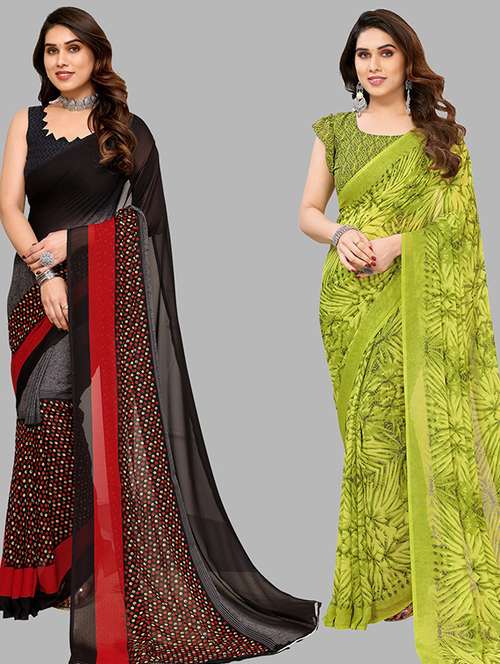 women pack of 2 casual wear combo sarees with blouse - 21446203 - Very Small Image - 1