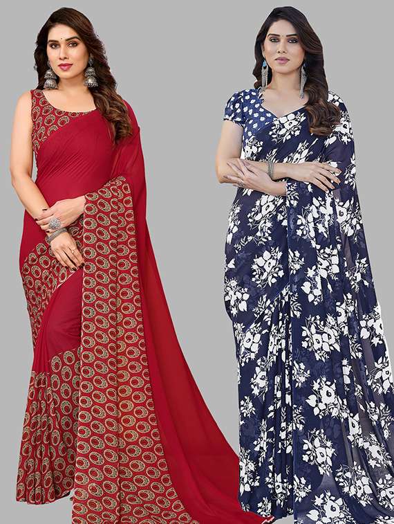 pack of 2 casual wear combo sarees with blouse - 21446204 - Very Small Image - 1