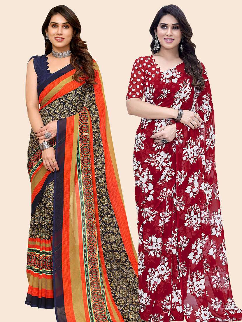 women pack of 2 casual wear combo sarees with blouse - 21446211 -  Standard Image - 1 women pack of 2 casual wear combo sarees with blouse - 21446211 -  Zoom Image - 1