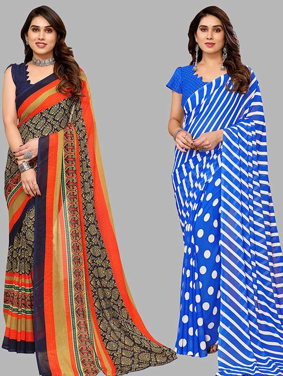 pack of 2 printed casual wear sarees with blouse - 21446238 - Very Small Image - 1