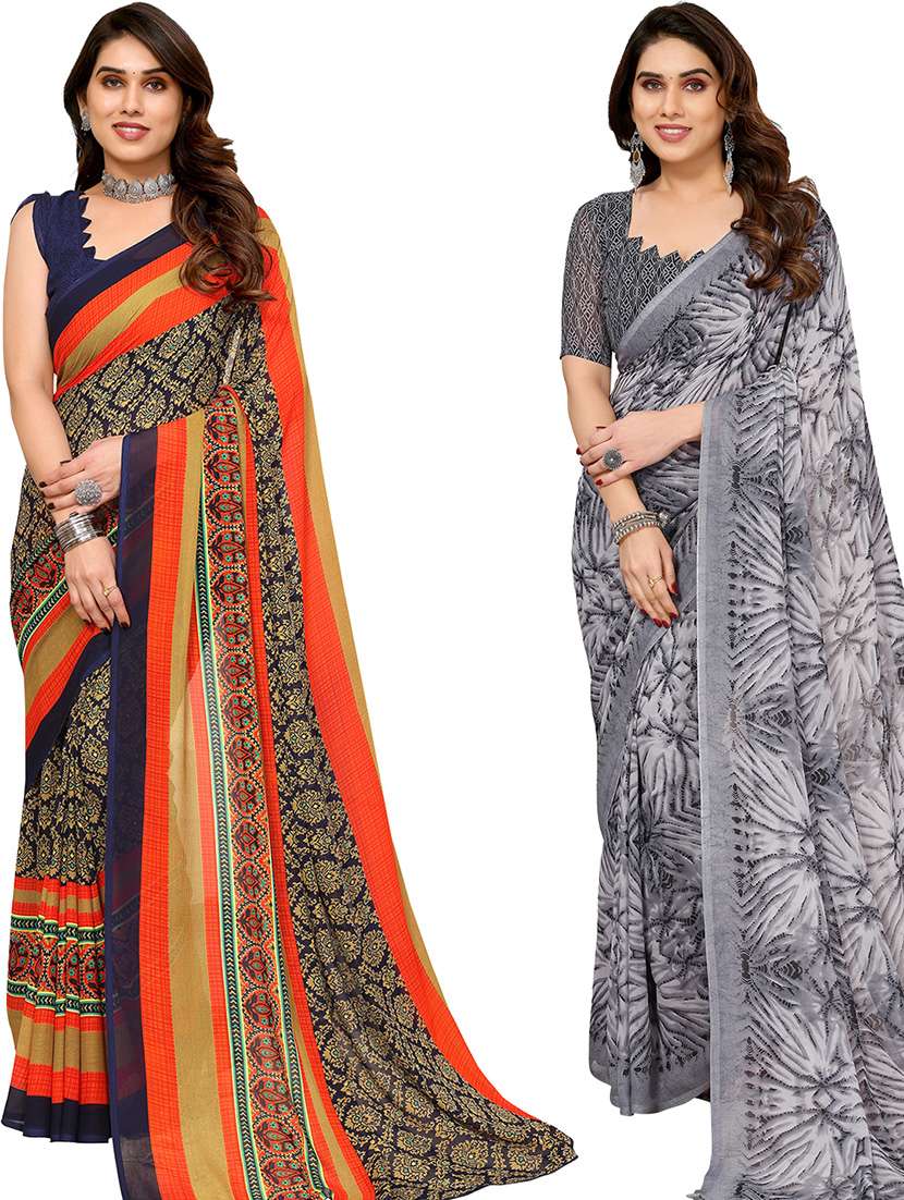 women pack of 2 casual wear combo sarees with blouse