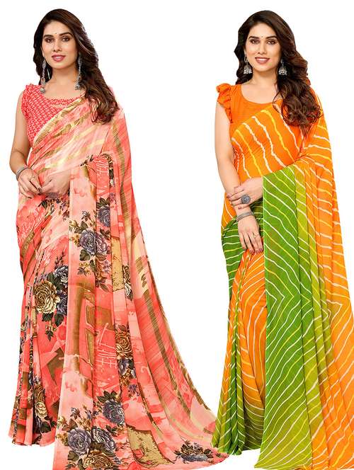 women pack of 2 casual wear combo sarees with blouse - 21446352 - Very Small Image - 1