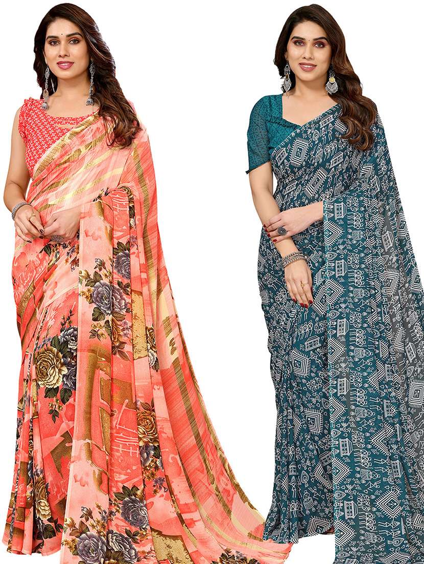 pack of 2 printed casual wear sarees with blouse - 21446363 - Very Small Image - 1