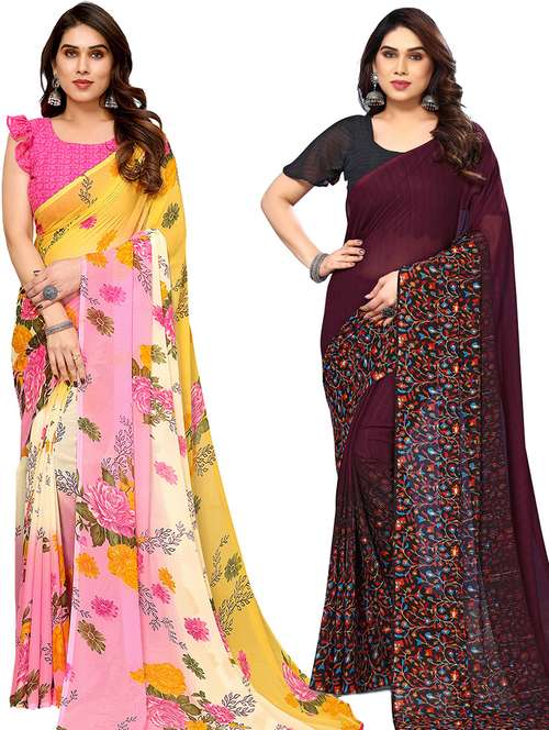 women pack of 2 casual wear combo sarees with blouse