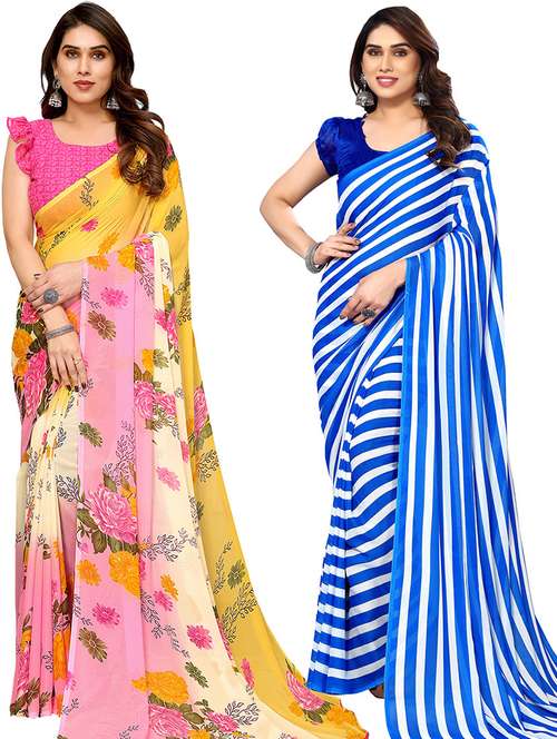 pack of 2 casual wear combo sarees with blouse - 21446375 - Very Small Image - 1