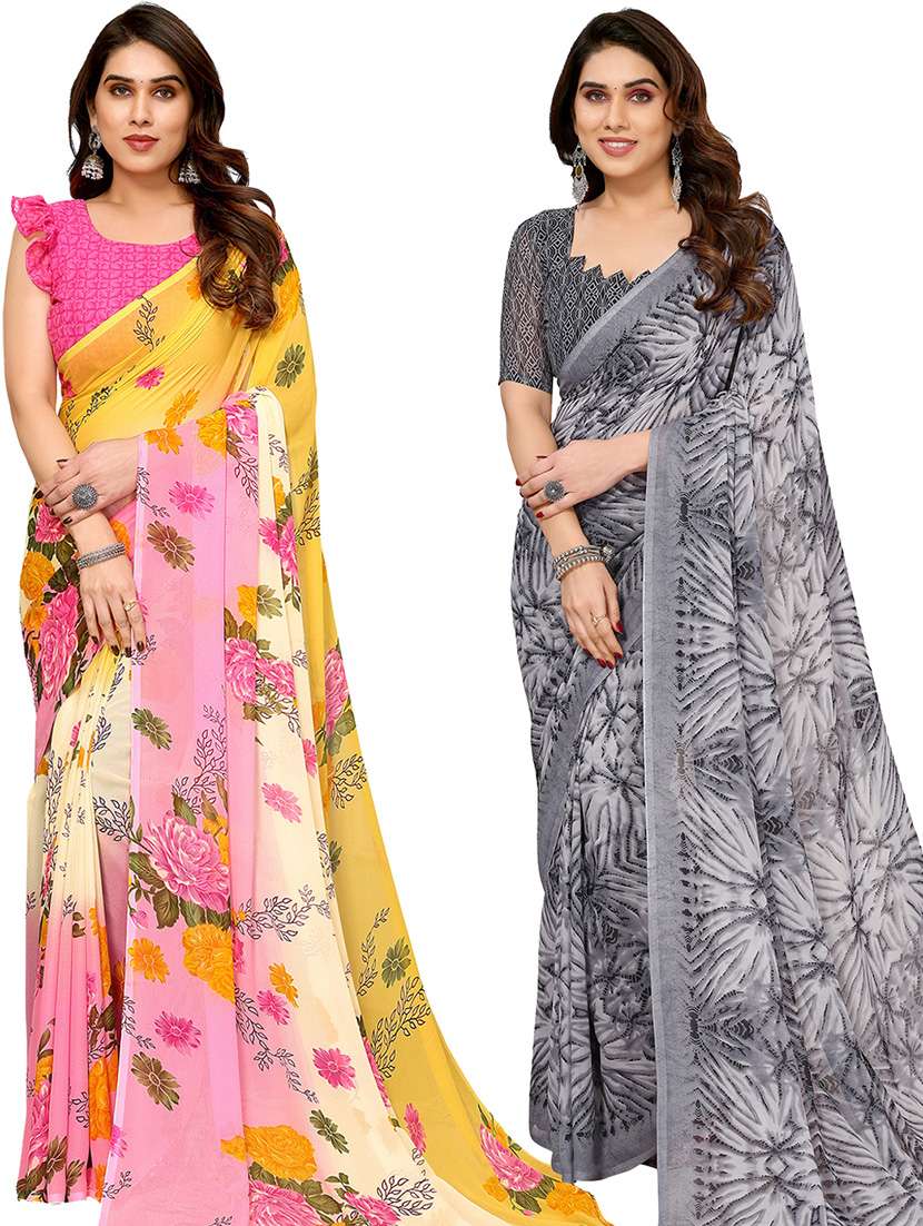 women pack of 2 casual wear combo sarees with blouse - 21446383 - Very Small Image - 1