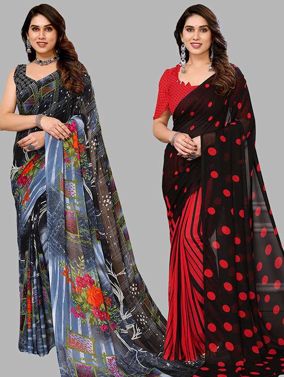 pack of 2 casual wear sarees with blouse - 21446457 - Very Small Image - 1