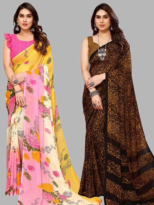 pack of 2 printed casual wear sarees with blouse - 21446482 - Very Small Image - 1