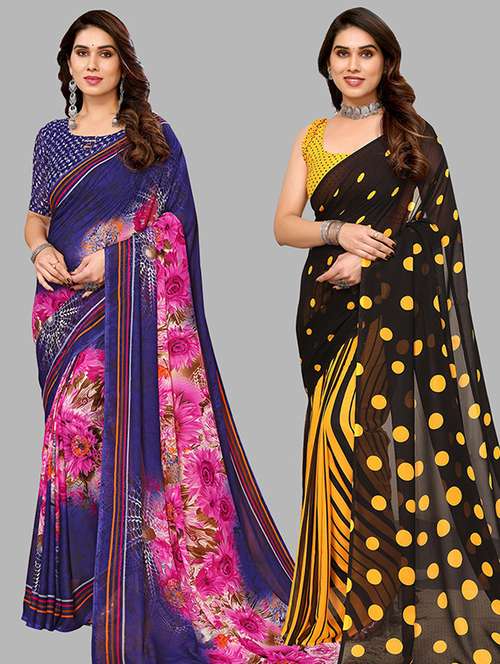 women pack of 2 casual wear combo saree with blouse