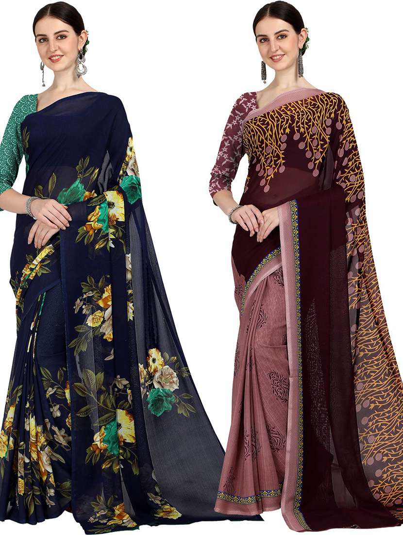 women pack of 2 casual wear combo sarees with blouse - 21473946 - Very Small Image - 1